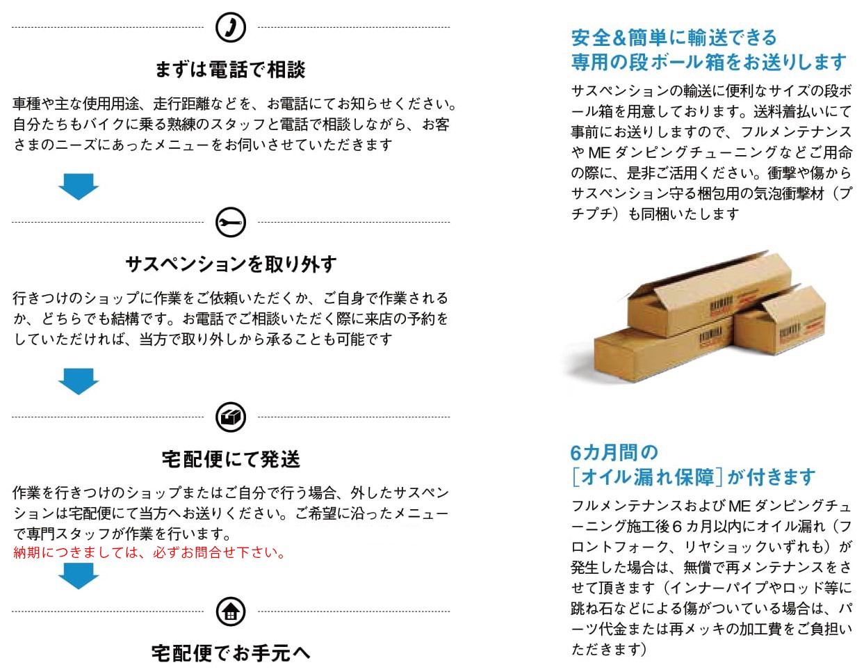 ※ 基本交換パーツ/オイル/サスペンションオイル、パーツ超音波洗浄/計測/研磨 を含んだメニューです。