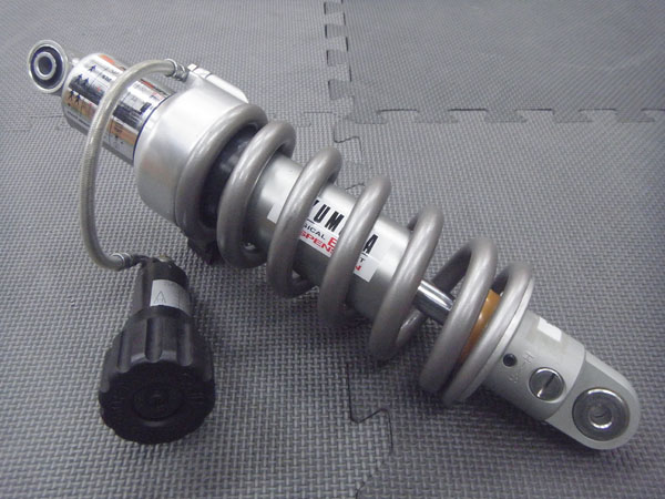 ノーマルの355mのショック長を345mmに加工して、ショック長で10mm、シート高で約20mm下げることが可能です。
