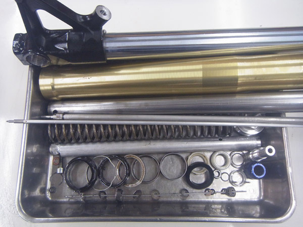 フロントフォークのフルメンテナンスをご依頼いただきました。