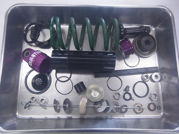 今回はQUANTUMリヤショックのフルメンテナンスをご依頼いただきました。