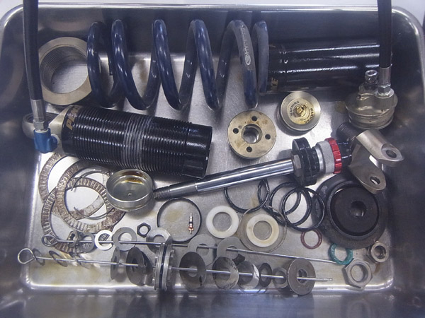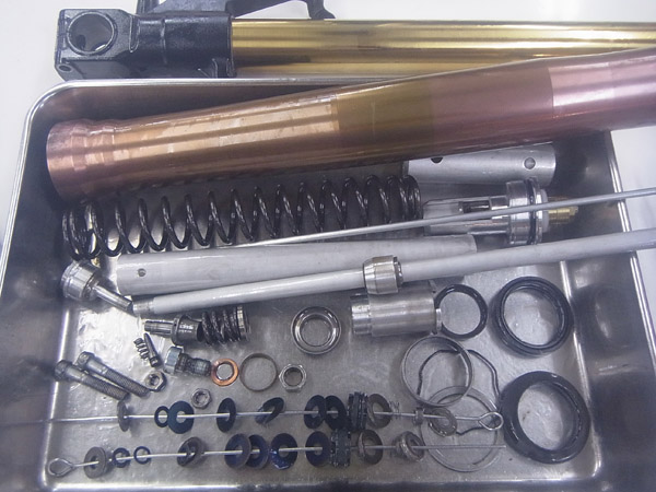 今回はフロントフォークのMEダンピングチューニング+MEスーパースポーツスプリング、リヤに装着されたPENSKE RACING SHOCKSのフルメンテナンスをご依頼いただきました。これだけ速いマシンは足回りもしっかりセットアップしないと安心して乗れませんね。安全面に於いてもサスペンションチューニングはお勧めです。