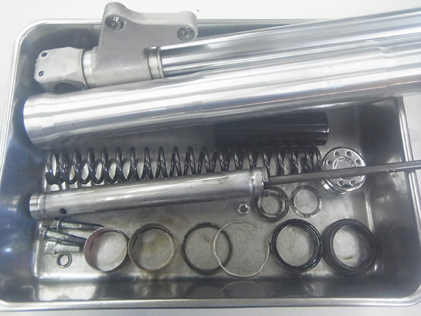 今回はフロントフォークのフルメンテナンスをご依頼いただきました。