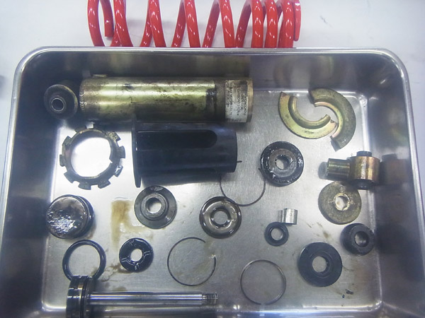 今回はこのRZ350リヤショックのフルメンテナンスをお任せいただきました。