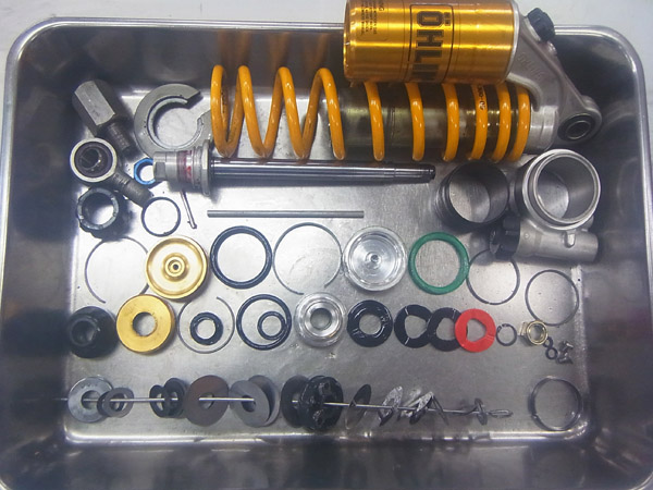今回はこのV-MAXに装着されているOHLINSリヤショックのフルメンテナンスをご依頼いただきました。