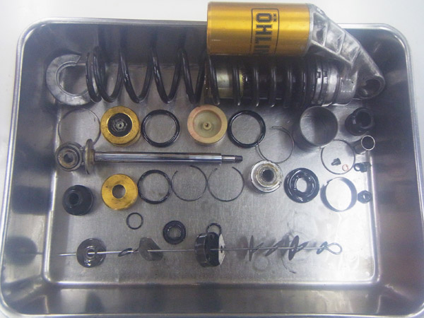 今回はOHLINSリヤショックのフルメンテナンスをご依頼いただきました。