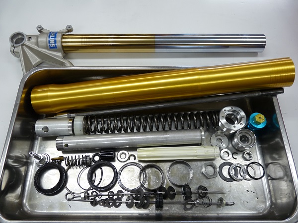 今回はOHLINSフロントフォークのフルメンテナンスをお任せいただきました。