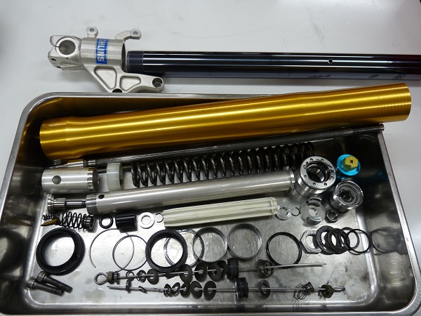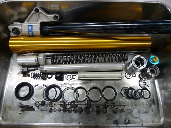 今回は純正採用されたOHLINSフロントフォークのMEチタンコートチューニングをご依頼いただきました。