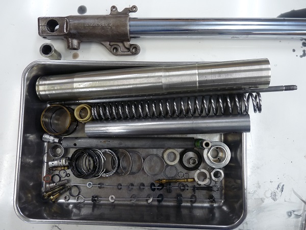 DUCATI900SSフロントフォークのフルメンテナンス、ステムベアリングのメンテナンスが完了いたしました。
