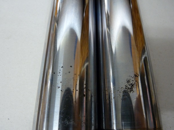 この貴重な名車YZF750SPを所有されているお客さまより、フロントフォークのMEチタンコートチューニングのご依頼をいただきました。錆で痛んでしまったインナーパイプにまずはクロームメッキの再メッキ加工を施した上に、限りなくブラックに近い「ネイビー色」でインナーパイプをチタンコーティング。フロントフォークにフルメンテナンスを施して組み上げました。精悍な足回りに仕上がっています。