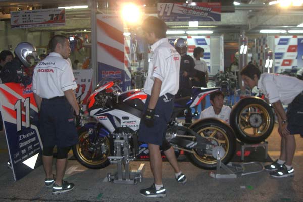 実は鈴鹿に入る前から各チームは、バイクを仕上げる作業と同時にピットワークの練習を積んできているのです。ホンダはレースで人を育てることを大切にしていますから、この重大な任務にも若いクルーを投入していることでしょう。