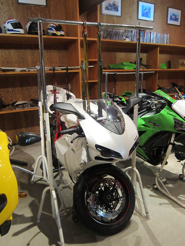車両をお預かりしてサスペンションの脱着を含めてのご依頼で、DUCATI1198Sのサスペンションチューニングをご依頼いただきました。