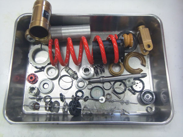 リヤショックに関してもコンプレッション側の高速域を抑え、リバウンド側の低、中速域を効かせています。
