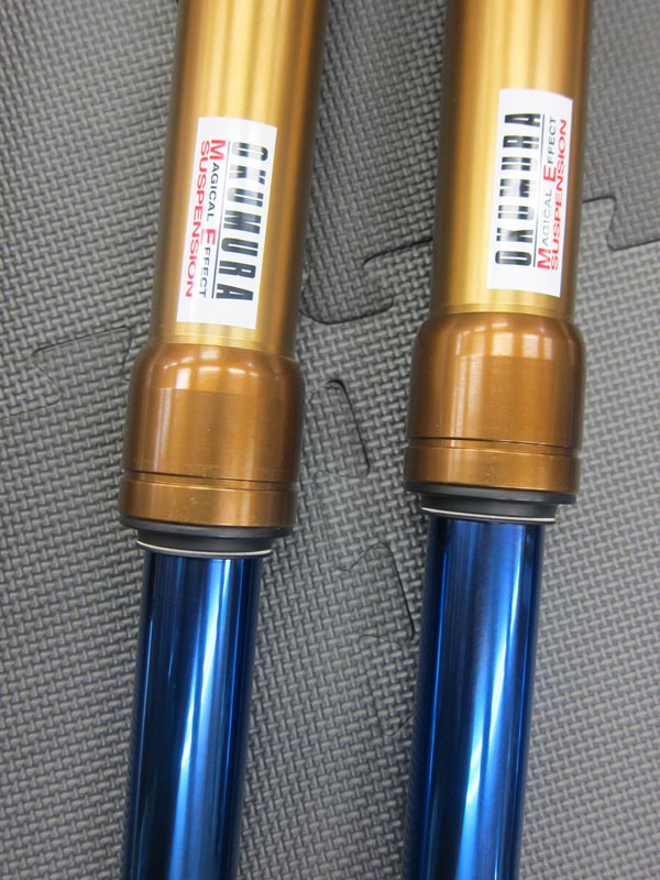 オイルロックピースを組み込んで、インナーパイプにMEチタンコートチューニング、アウターパイプやダンパーシリンダにMEカシマコーティングを施したスペシャルフォークです。