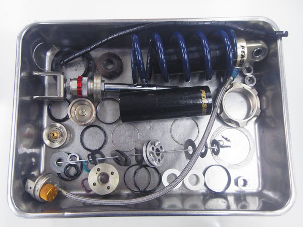 ならば、と数年前にお客さまからZZ-R250用のPENSKE RACING SHOCKSでの製作をご依頼いただきました。