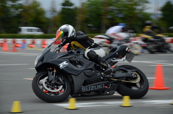 こちらもお客さまにいただいた走りの写真。1000ccのスポーツバイクで狭いジムカーナコースを目いっぱい攻めるってスゴイことだと思います。