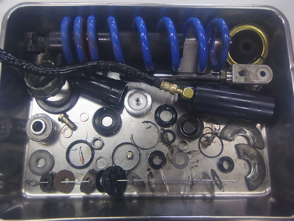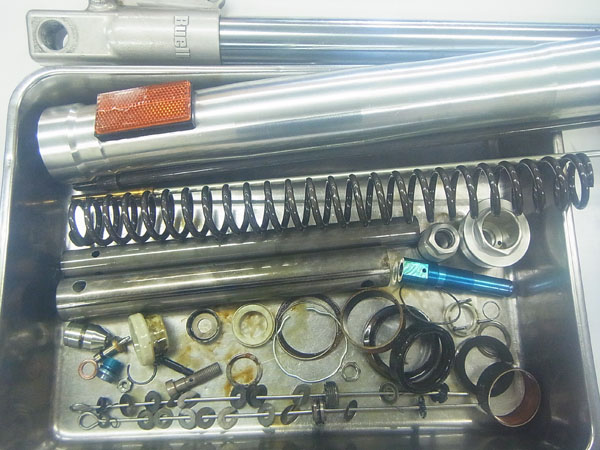 SHOWA製インナーパイプ径Φ41倒立フロントフォークとSHOWA製モノショックです。