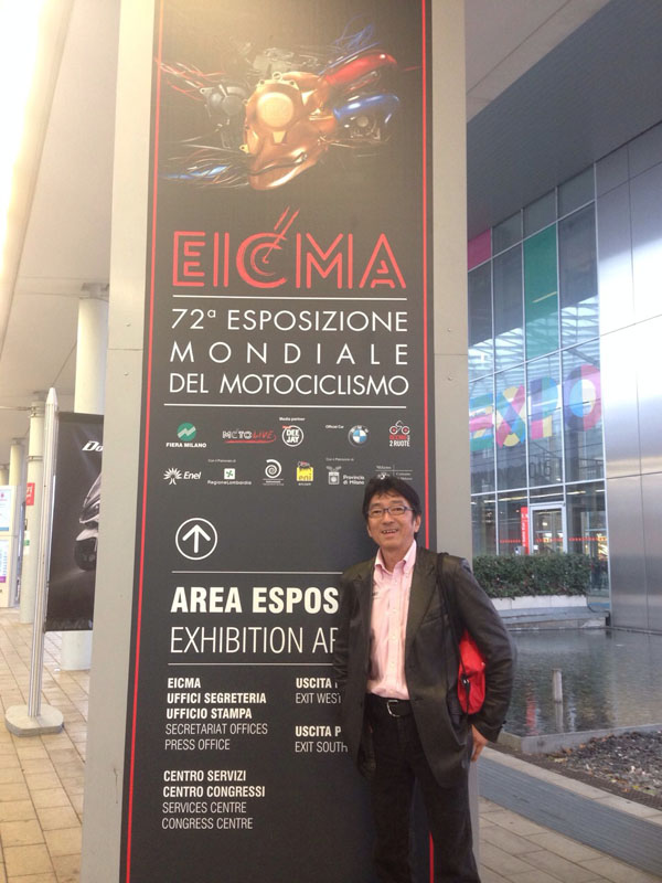 以前からこのショーの規模の大きさや各メーカーのこのショーに合わせたニューモデルの発表のことは聞いておりましたが、実際に出掛けることはありませんでした。名古屋>羽田>パリ>ミラノと乗り継ぎ、通訳をお願いした長女と合流して2日間に渡ってショーを観てきました。東京モーターサイクルショーの何倍もの規模で想像をはるかに超えていました。いろいろなものを観て、聞いて、感じて、しっかり充電することができたと思います。これから少しずつ仕事に生かしていきたいと思っています。