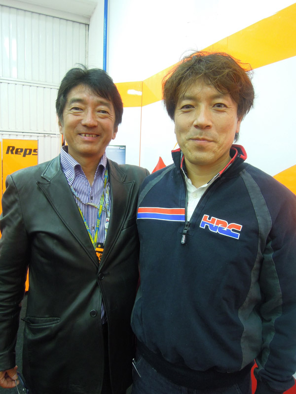 私がHRC時代からチームスタッフだった松原さんと。マルケス選手担当のエンジニアさんです。