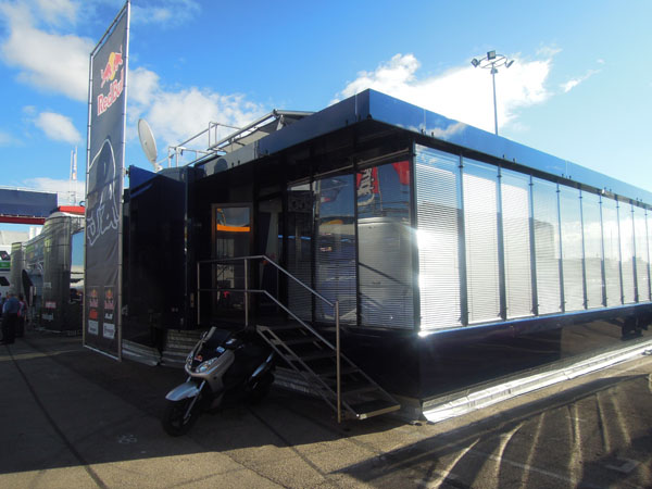 そして、こちらがチームやスポンサーのモーターホーム(ホスピタリティブース)です。