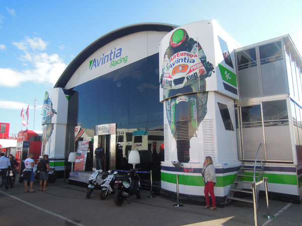 パドックのピットガレージに一番近いところにチームのトレーラーが並んでいます。パドックをきれいに見せるためにトレーラーのサイズも決められているそうで、チーム本拠地を出発する前に洗車。パドックに着いてからも洗車してピカピカです。このトレーラーにはマシンを含む機材が積積み込まれていますが、設営後はエンジニアが仕事をするオフィスだったり、ミーティングルームだったり、ライダーが着替えをする部屋になっています。HRCを含むmotoGPのワークスチームはこのトレーラーを4台使っていました。
