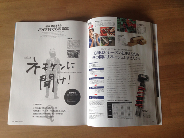 サスペンション屋の立場から、もっと楽しく、不安なく走らせることのできるMT-09に仕上げられるよういろいろ試してみたいと思います。詳しくは「ライダースクラブ3月号」を観て下さい。これからしばらくの連載となります。どうぞ、よろしくお願いします!