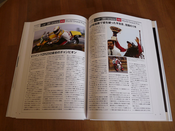 残念ながら私はタイトルを逃しているので私の名前や写真は掲載されていませんでしたが、1980年代にヤマハのライダーとして、市販レーサーTZ125/250、ファクトリーレーサーYZR250に乗せていただいたことを誇りに思っていますし、レーサーとして、人として育てていただいたことに心から感謝しています。