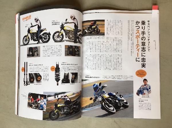 プロデュースしている「スクランブラー用フロントフォークインナーカートリッジキット」と「オリジナル・リヤショック」を紹介していただいています。