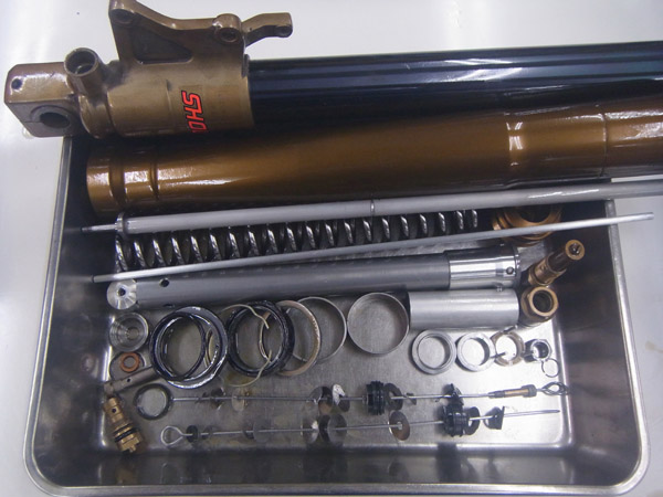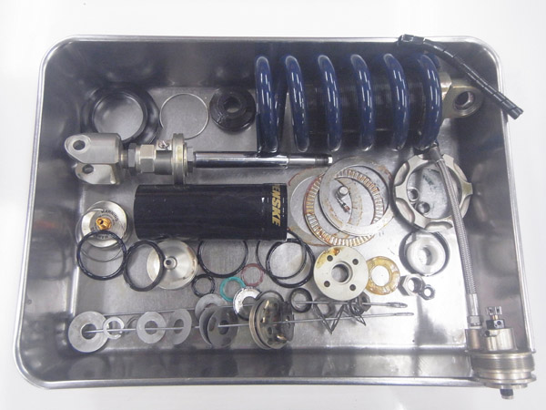 こちらのお客さまは以前にフロントフォークにMEチタンコートチューニング、MEカシマコーティングを施していただいて、リヤショックにはPENSKE RACING SHOCKS8987をご採用いただいており、その後も定期的に前後サスペンションのフルメンテナンスをご依頼いただいています。NR750をとても大切にされていて、サスペンションに限らず全ての機能を常にベストな状態に保たれています。