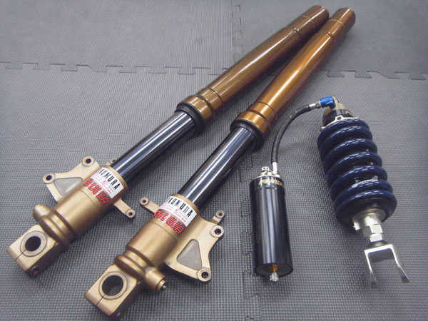 SHOWA製インナーパイプ径φ43倒立フロントフォークとPENSKE RACING SHOCKS8987です。
