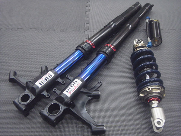 SHOWA製インナーパイプ径φ43倒立フォークとPENSKE RACING SHOCKS8987です。