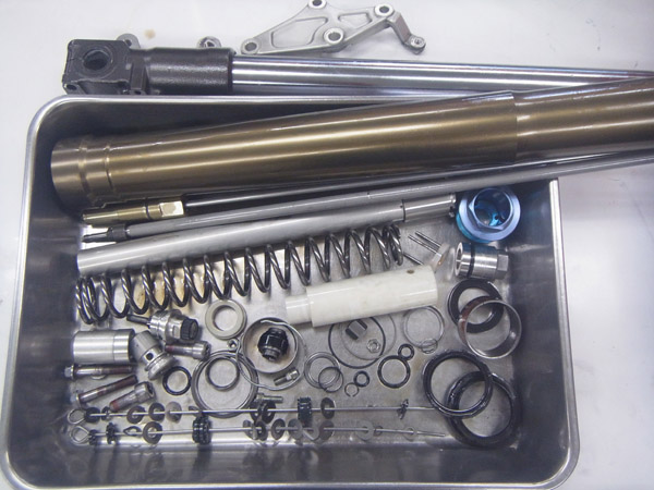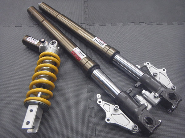 SHOWA製インナーパイプ径φ43倒立フロントフォークとSHOWA製モノショックです。
