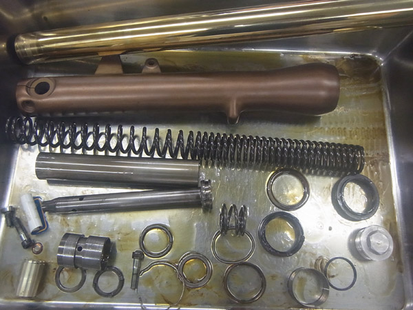 今回はフロントフォークのMEダンピングチューニングでのセットアップを含めた「MEチタンコートチューニング(ゴールド)」、アウターパイプの「MEカシマコーティング」のご依頼をいただきました。