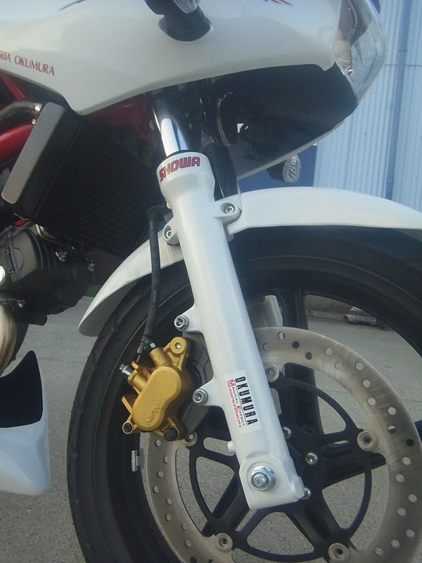 取り回しの軽快さからVTR250を新車でご購入され、すぐにスクーデリアオクムラにサスペンションチューニングのご相談にお越しいただきました。スクーデリアオクムラのデモ車両のVTR250をご試乗されるとすぐに同じ仕様でのご依頼をいただきました。