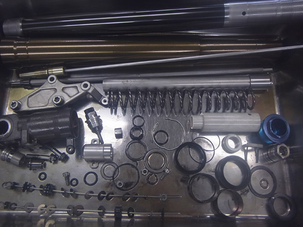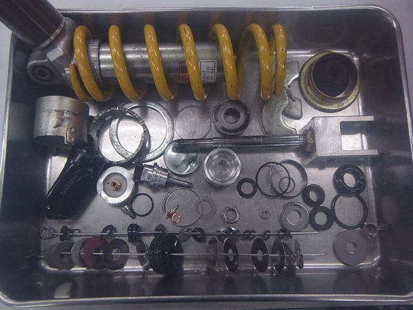 今回はスクーデリアオクムラの新しいインナーパイプコーティング、ME DLCコーティングを施した上で、MEダンピングチューニング+MEスーパースポーツスプリングでのセットアップをご依頼いただきました。適正なダンピング特性とスプリングレートは、フリクションの少ないME DLCコーティングによってさらにスムースなサスペンションに仕上げることができました。リヤショックへのMEダンピングチューニングも同時にご依頼いただいております。