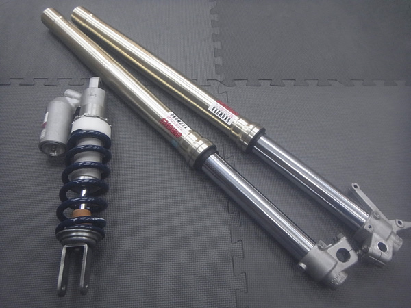 SHOWA製インナーパイプ径Φ45倒立フロントフォークとSHOWA製モノショックです。