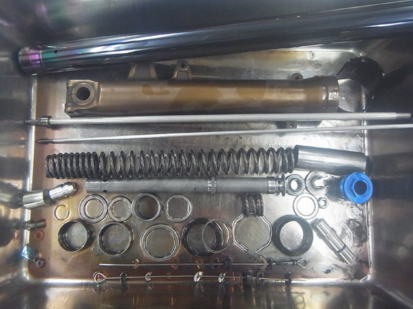 今回はMEカシマコーティングを併せてのフロントフォークセットアップをご依頼いただきました。これらの新しい技術はサスペンションの性能向上に大きな効果があり、ワークスマシンにふんだんに使われています。