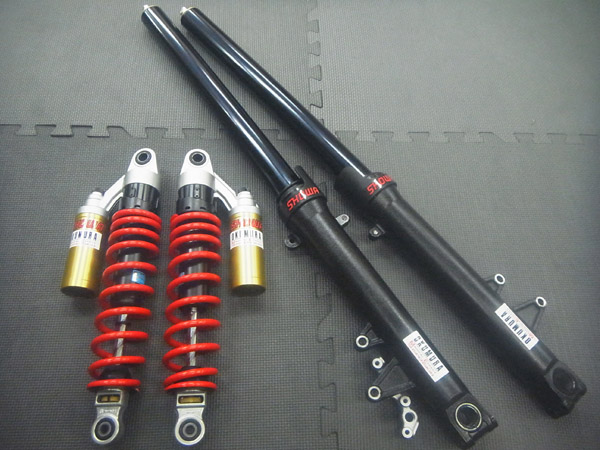 SHOWA製インナーパイプ径Φ43正立フロントフォークとSHOWA製ツインショックです。