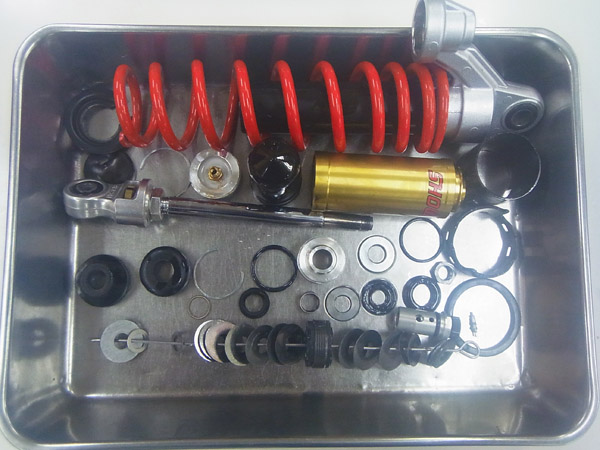 スクーデリアオクムラではこのCB1300のサスペンションを本当に数多く手掛けており、前後サスペンションのフルメンテナンスや、リヤショックにOHLINSなどのリ・プレイスサスペンションを装着した際に前後のバランスを整える意味でのフロントフォークのMEダンピングチューニング+MEスーパースポーツスプリングでのセットアップ。また、今回のように前後併せてのMEダンピングチューニングでのセットアップと様々なメニューによってCB1300と関わってきました。