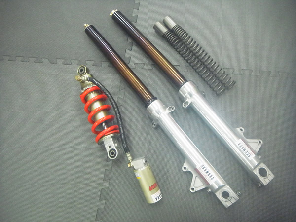 SHOWA製インナーパイプ径Φ41正立フロントフォークとSHOWA製モノショックです。