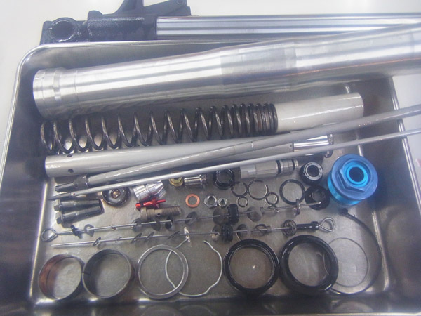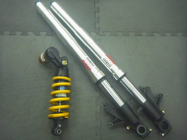 SHOWA製インナーパイプ径Φ43倒立フロントフォークとSHOWA製モノショックです。