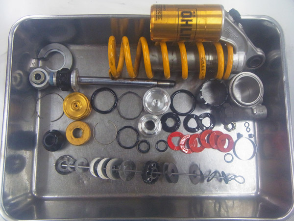 今回はノーマルのフロントフォークをベースにダンピング仕様をオーナーに合わせセットアップするMEダンピングチューニング+MEスーパースポーツスプリングに加えてアウターパイプのMEアルマイトコーティング(ブラック)と、OHLINSリヤショックのフルメンテナンスをご依頼いただきました。気に入ったバイクをいつまでも大切にお乗りいただくためにスクーデリアオクムラがお手伝いさせていただきます。