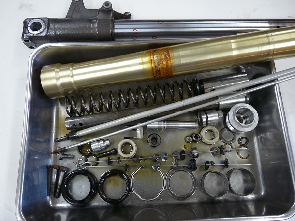 RVF400前後サスペンションのフルメンテナンスが完了いたしました。