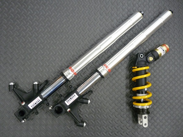SHOWA製インナーパイプ径φ43倒立フロントフォークと、SHOWA製モノリヤショックです。