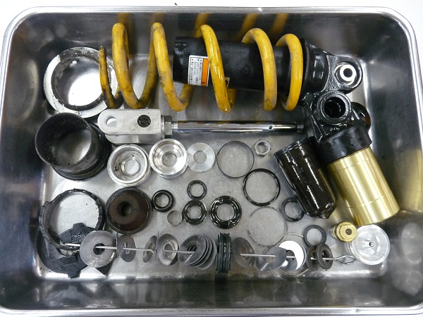 エンジンオイルを定期的に交換することは当たり前になっていて、あまり距離を走らないからと何年もオイル交換しない放置するようなライダーはほとんど見受けられませんが、サスペンションに関してはオイル漏れが発生しなければ、機能の低下に気付かないまま何年も乗り続けているライダーもいます。サスペンションオイルは酸化によって劣化しますし、メタルの磨耗やオイルシール類の硬化によるフリクションの増大、磨耗したメタルから発生したスラッジが繊細なオイルラインに堆積して油圧を低下させてしまったり、インナーパイプやダンパーロッドの傷や錆びなどによってシールを痛めるなど、大きな荷重を支えながら音速で作動しているサスペンションには様々なストレスが掛かっています。