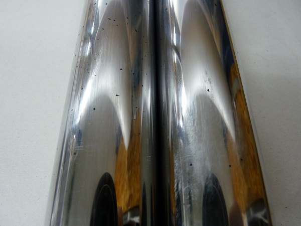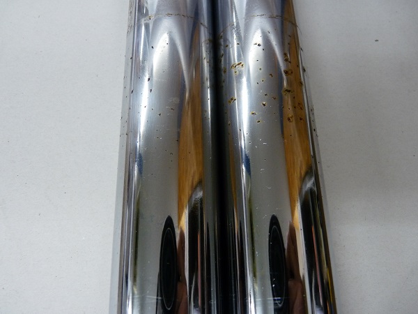 フロントフォークインナーパイプ再メッキ加工の費用は、¥22,000-(税別)/1本となります。