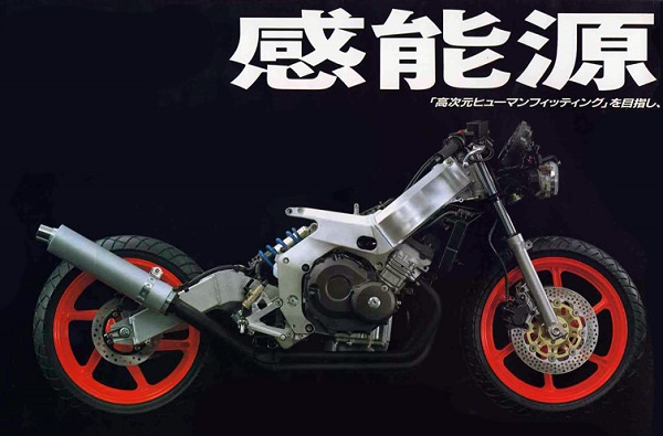 水冷4サイクル250ccDOHC16バルブ4気筒カムギアトレーンエンジンをアルミツインスパーフレームに搭載したCBR250RR MC22です。45ps/15,000rpm 2.5kg-m/12,000rpmというエンジンスペック。どうしてもエンジンの造りやスペックに目が行きがちですが、このモデルはフレームにも大きな特徴があります。LCR(Low Center of Gravity)フレームは、低重心、かつマスの集中化を目的とした独特の形状のデザインで、剛性バランスの最適化にも貢献しています。250cc4気筒エンジンということで、高いエンジン回転を維持しながら走らせることはどうしてもライダーへの負担が増えてしまいますが、このフレームのおかげで高回転を維持していても安定感を感じながら走らせることができているのだと思います。