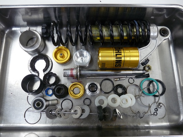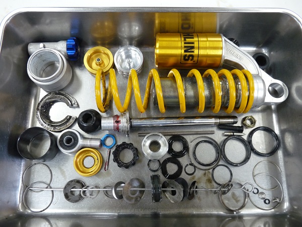 CB用OHLINSリヤショックのフルメンテナンスが完了いたしました。