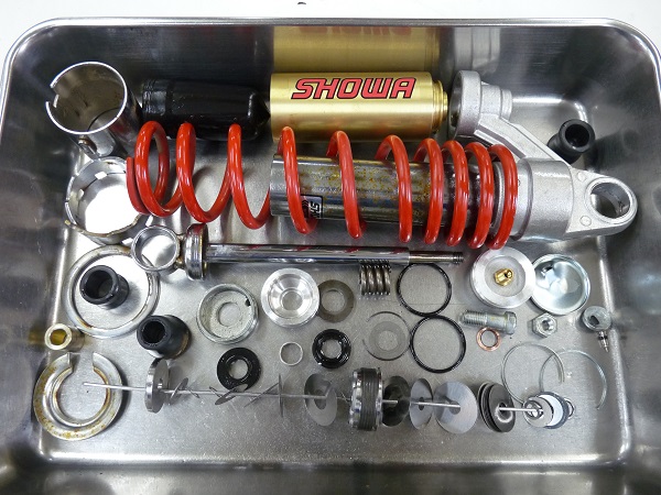 今回はこのHYPER VTEC搭載CB400SFのリヤショックフルメンテナンスをご依頼いただきました。ダンパーロッドに錆があり、NGレベルでしたので新品のダンパーロッドに交換して組み上げました。スクーデリアオクムラには一般に市販していないサスペンションパーツの在庫も豊富しています。スクーデリアオクムラにご相談下さい。