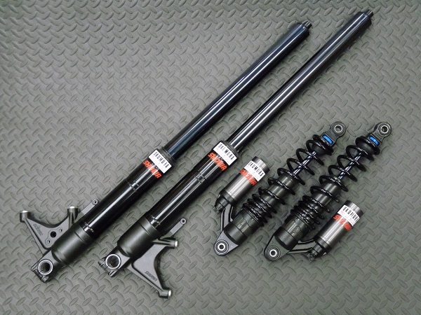 SHOWA製インナーパイプ径φ43正立フロントフォークと、SHOWA製ツインリヤショックです。
