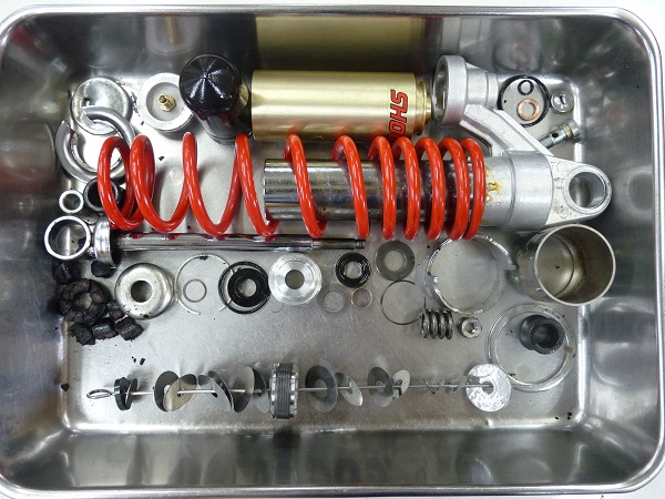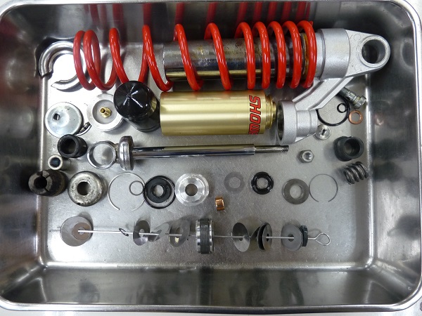 CB1300SF/SBの弟分にあたるCB400SF/SBです。400ccという排気量から日本専用モデルとなりますが、非常に完成度が高く、ビギナーからベテランまで多くのライダーからの支持を得てベストセラーモデルとなっています。現在、手に入れることのできる唯一の400cc4気筒モデル。スクーデリアオクムラではこのCB400SF/SBのフロントフォーク、リヤショックのフルメンテナンスのご依頼をたいへん多くいただいております。量産工場での組み上げに比べてサスペンション選任スタッフが1つ1つ丁寧に組み上げることで、新車、新品時を上回るパフォーマンスを得ていただけます。今回は純正リヤショックのフルメンテナンスをご依頼いただきました。